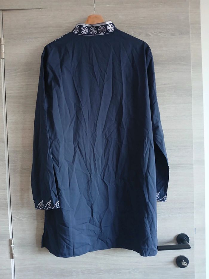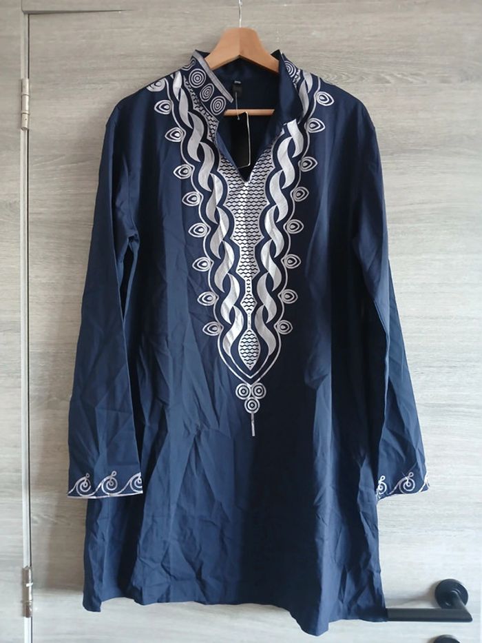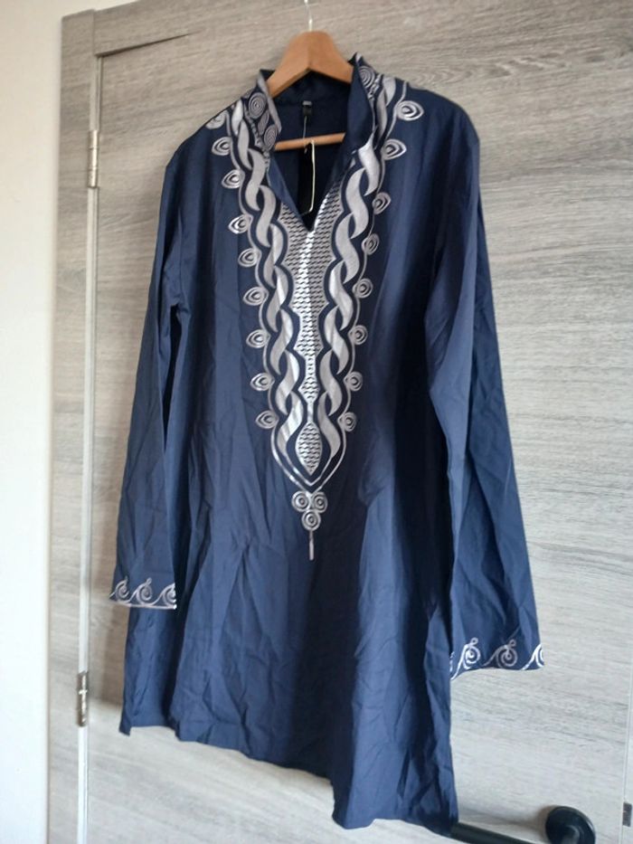 Tunique/djellaba bleu marine imprimé argenté Taille M
