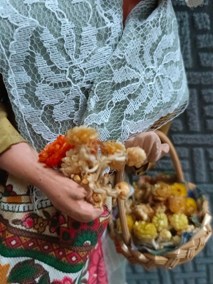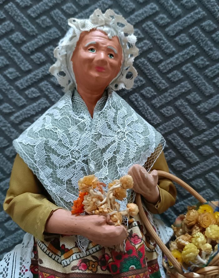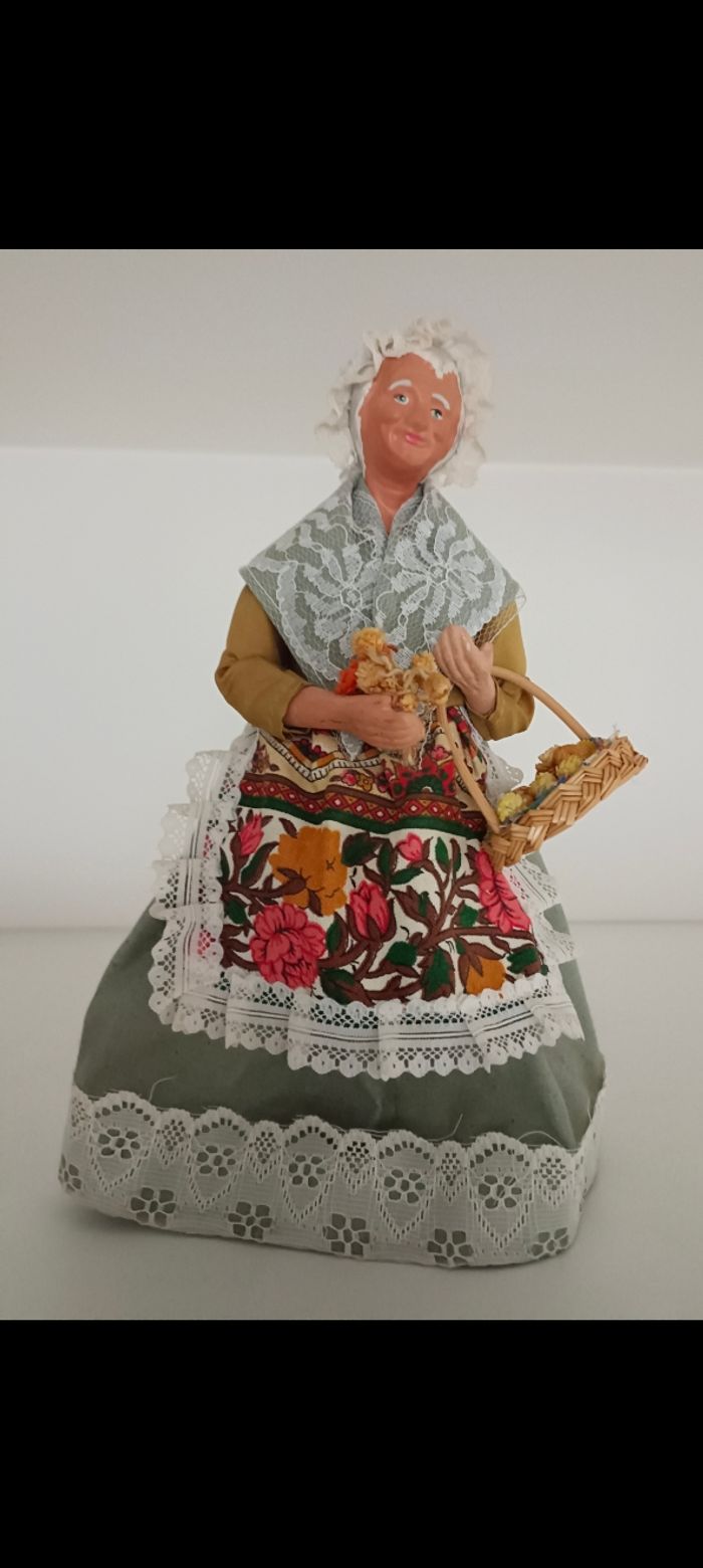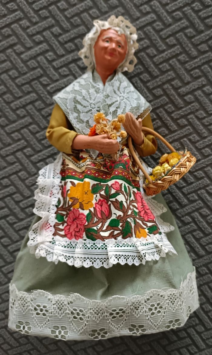 Santon de Provence habillé : la femme au panier de fleurs séches Santon ancien en excellent état de conservation #santonsdeprovencecamilled974 #crècheprovençalecamilled974
