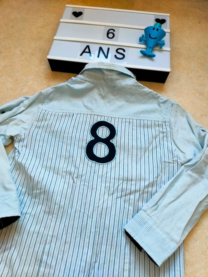 Boutons et bouton pression en haut Rayures Motif sur l'avant et chiffre 8 derrière #didinedoragarçon6ans #orchestra #chemise