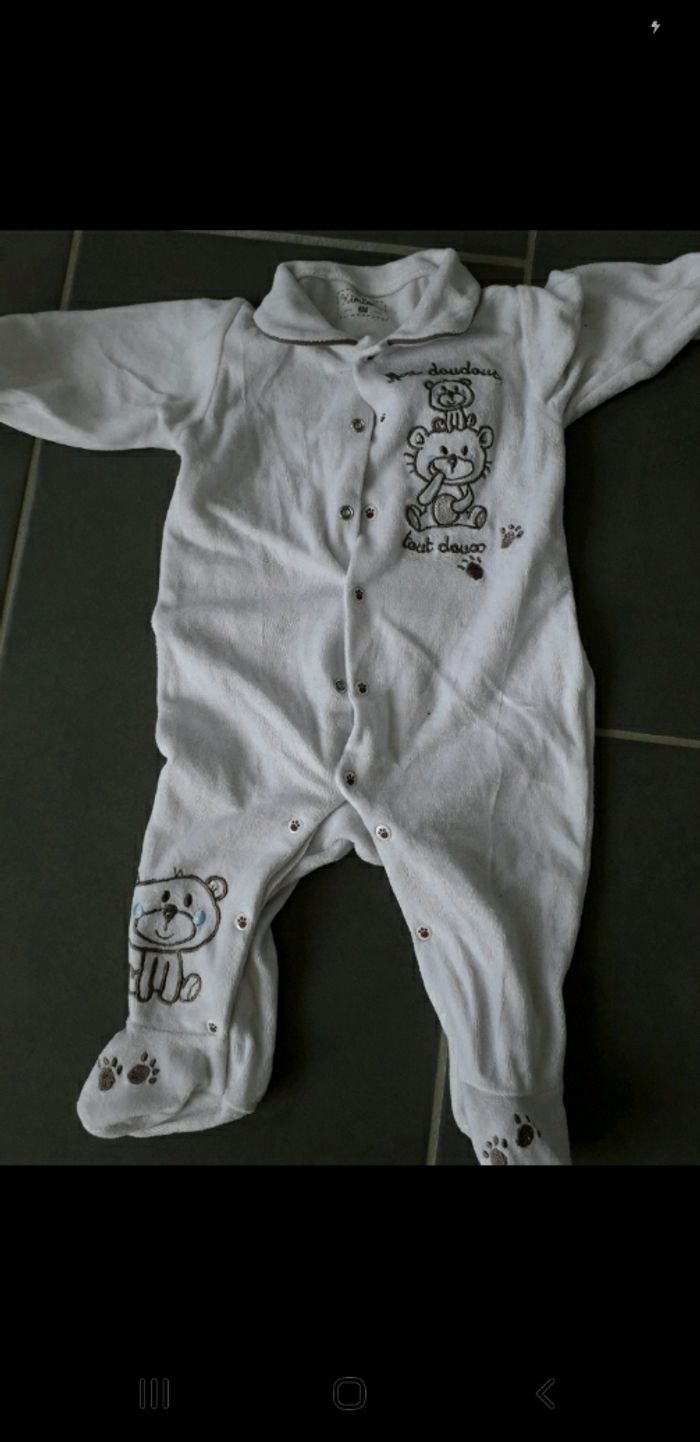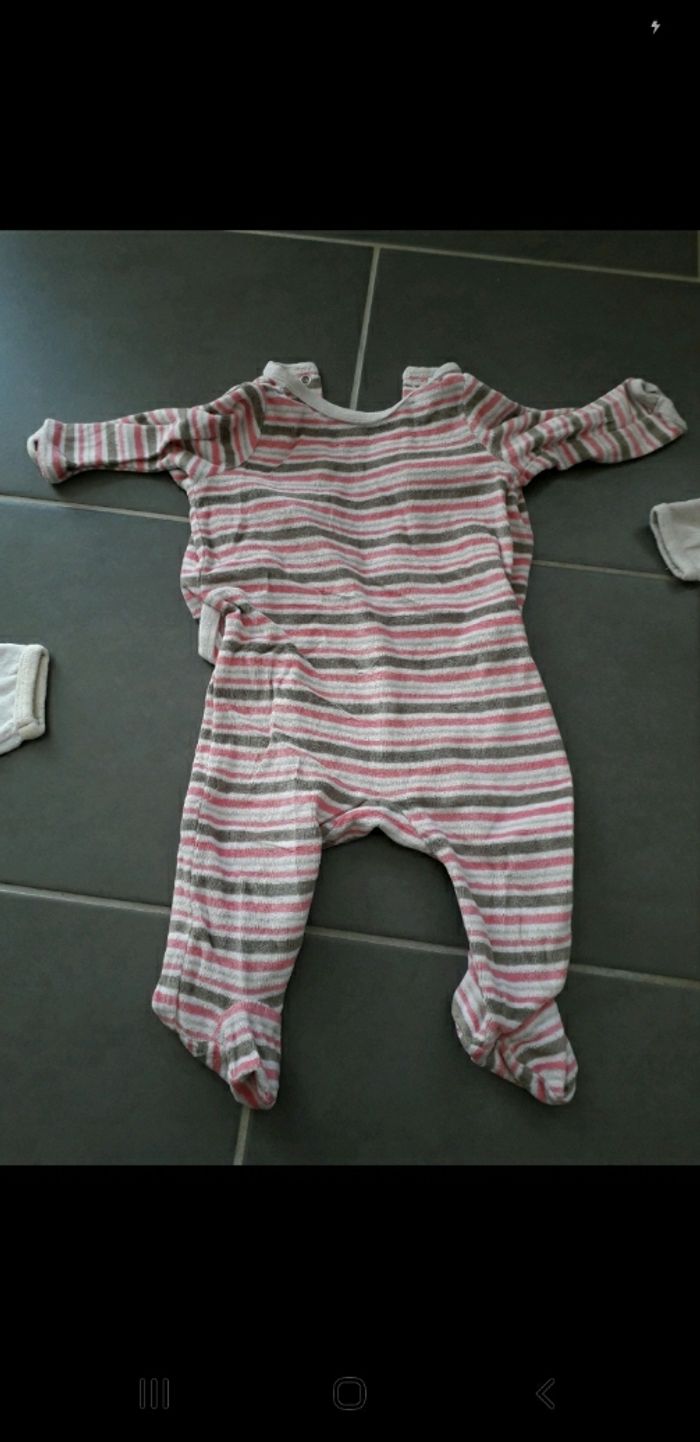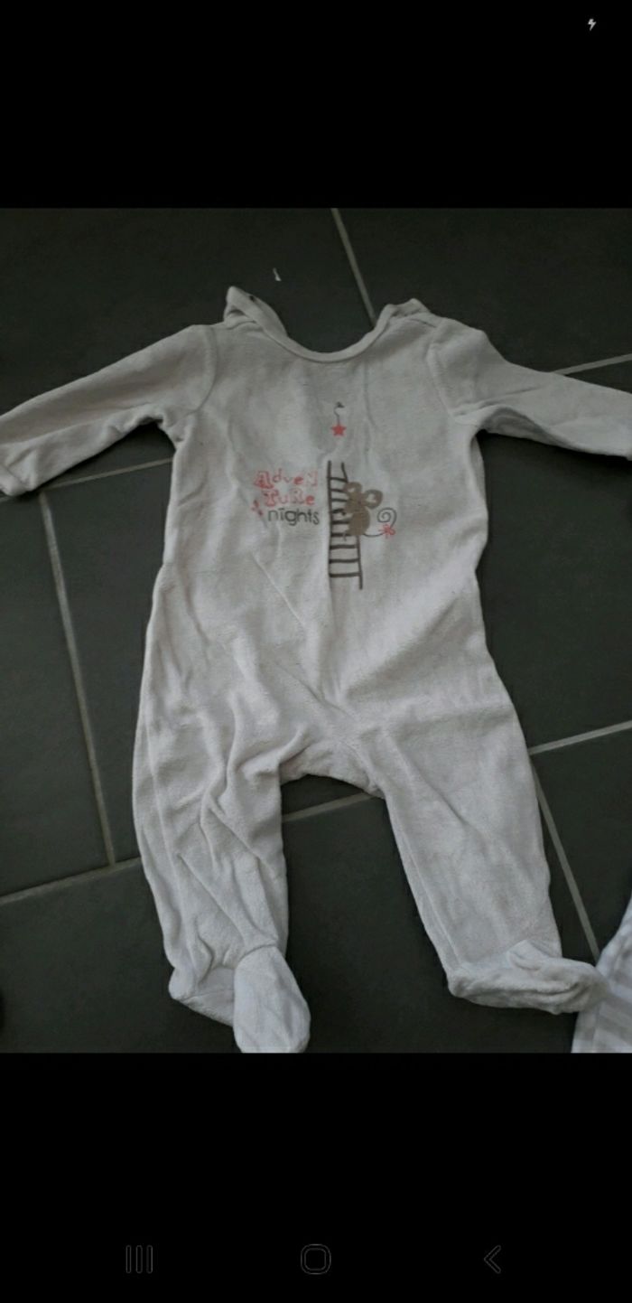 4 pyjamas velours avec ouverture au dos . Pyjama rayé marque u essentiel. Pyjama blanc avec ours marque kimbaloo Les 2 autres pyjamas : rayé rose et crème marque tex.