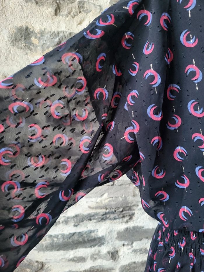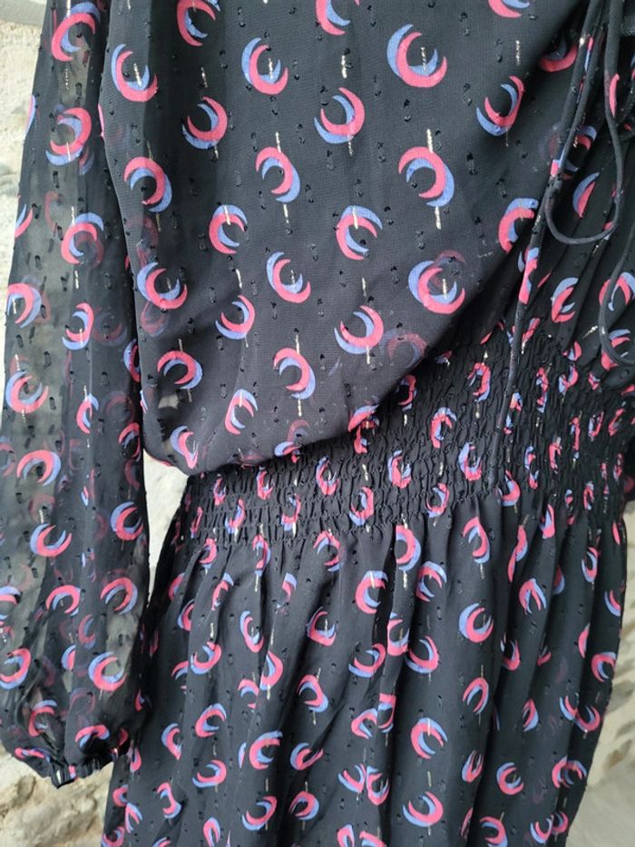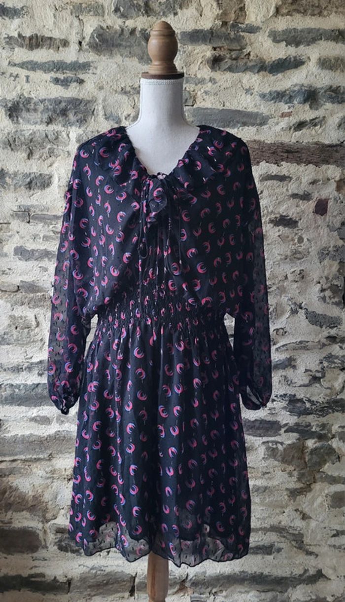 Robe bohème manches longues noire motifs rose bleu irisé Amy & Clo Taille XXXL ou 46