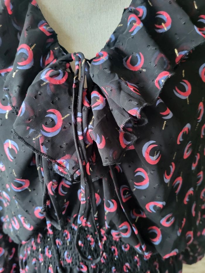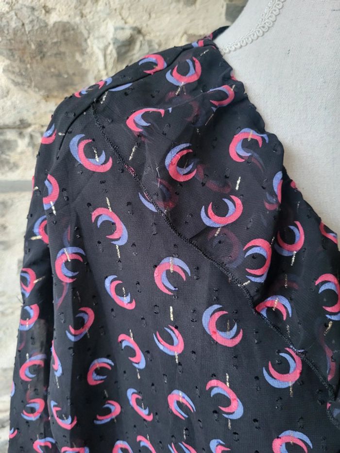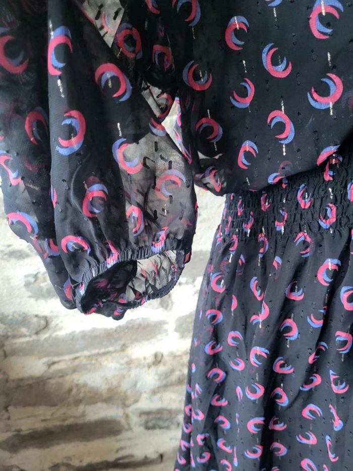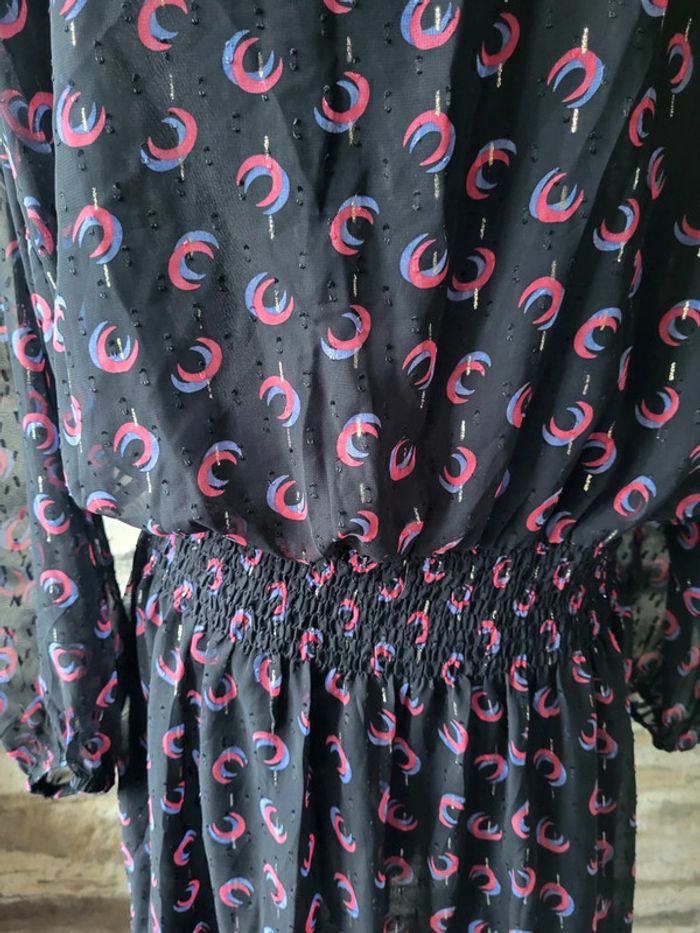 Robe bohème manches longues noire motifs rose bleu irisé Amy & Clo Taille XXXL ou 46 - photo numéro 13