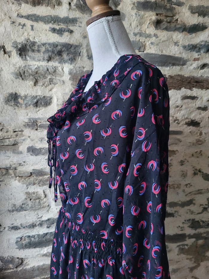 Robe bohème manches longues noire motifs rose bleu irisé Amy & Clo Taille XXXL ou 46 - photo numéro 9