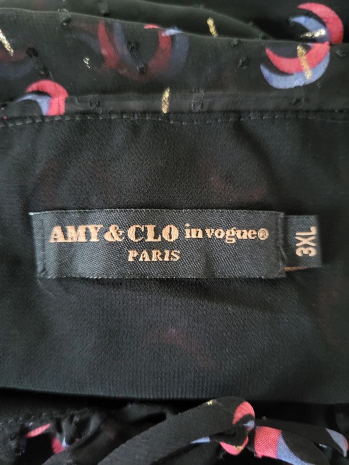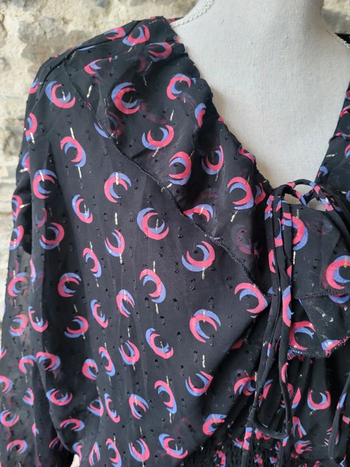 Robe bohème manches longues noire motifs rose bleu irisé Amy & Clo Taille XXXL ou 46 - photo numéro 7