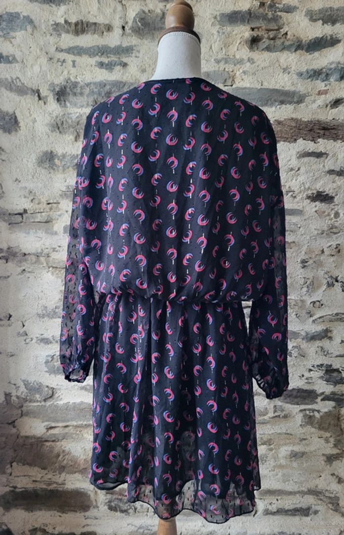 Robe bohème manches longues noire motifs rose bleu irisé Amy & Clo Taille XXXL ou 46 - photo numéro 6