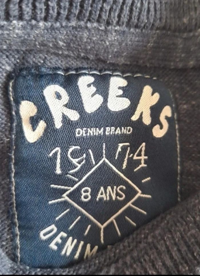 Vends ce joli pull bleu marine creeks garçon ☆8 ans ☆Pull fin ☆Bleu marine "moucheté " blanc ☆Bon état ☆Pas de taches ni trous, ⚠️ col un peu fatigué dû aux lavages et repassage.( voir photos ) #pull8ansgarcon #pullcreeks8ans #creeks8ansgarçon #8anscreeks #creeks8ansgarçon