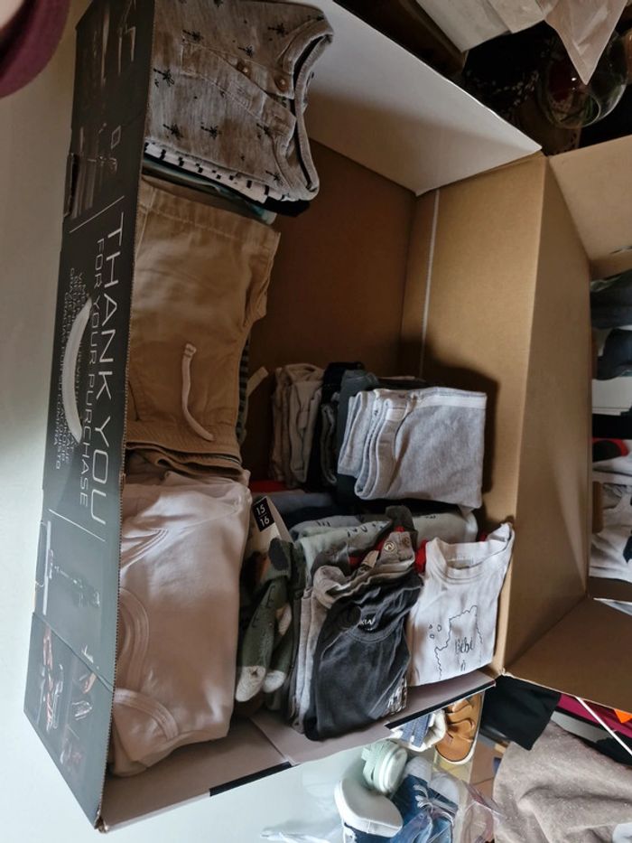 Articles visibles dans mon dressing 1 manteau 6 pyjamas epais (2 avec tâches qui doivent partir au lavage) 5 tee shirts manches longues (1 tâché au col qui doit partir au lavage) 4 pantalons 14 tee-shirts manches courtes 6 shorts 1 gilet 2 paires de chaussettes 11 bodys manches courtes 5 bodys manches longues (1 jaunit au col)