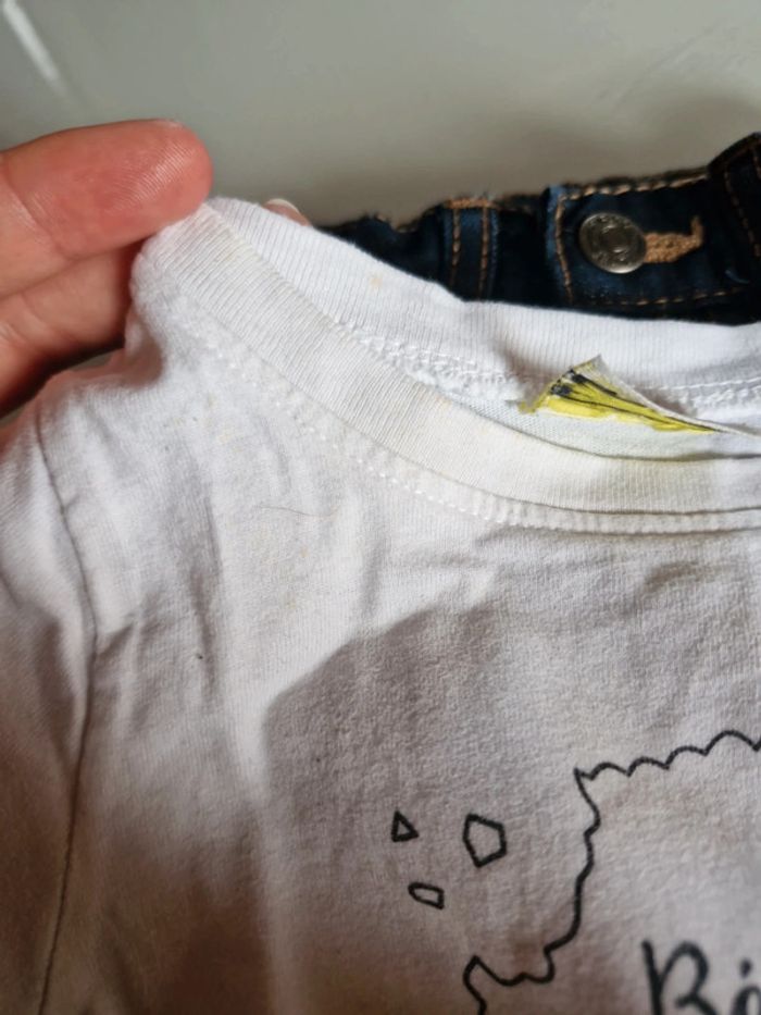 Très bon état Légères tâches au col du tee shirt voir photo doit partir au lavage Pantalon pat et ripaton Tee shirt tape à l’œil