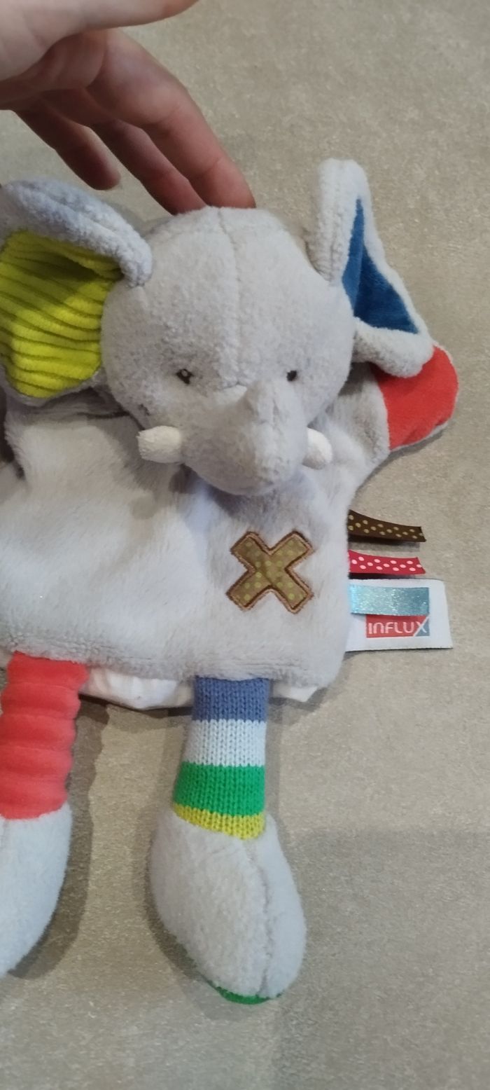 Bonjour, Je vends ce doudou marionnette éléphant de la marque influx en très bon état