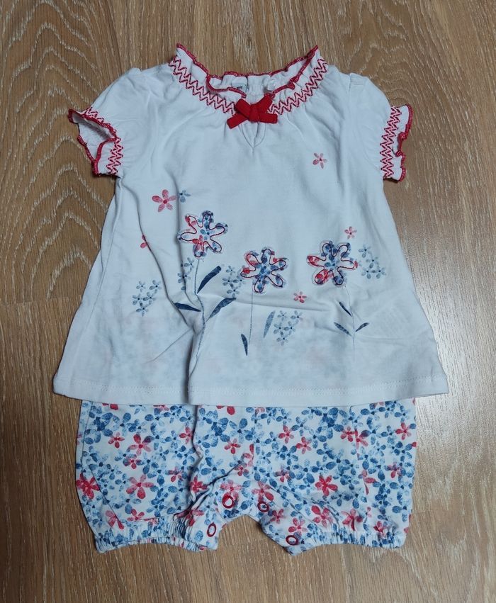Combi-short portée une fois. Marque : Plus Collection. Taille 3 mois.