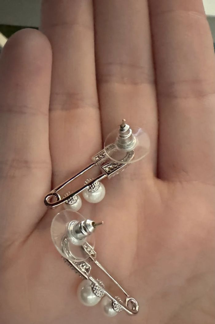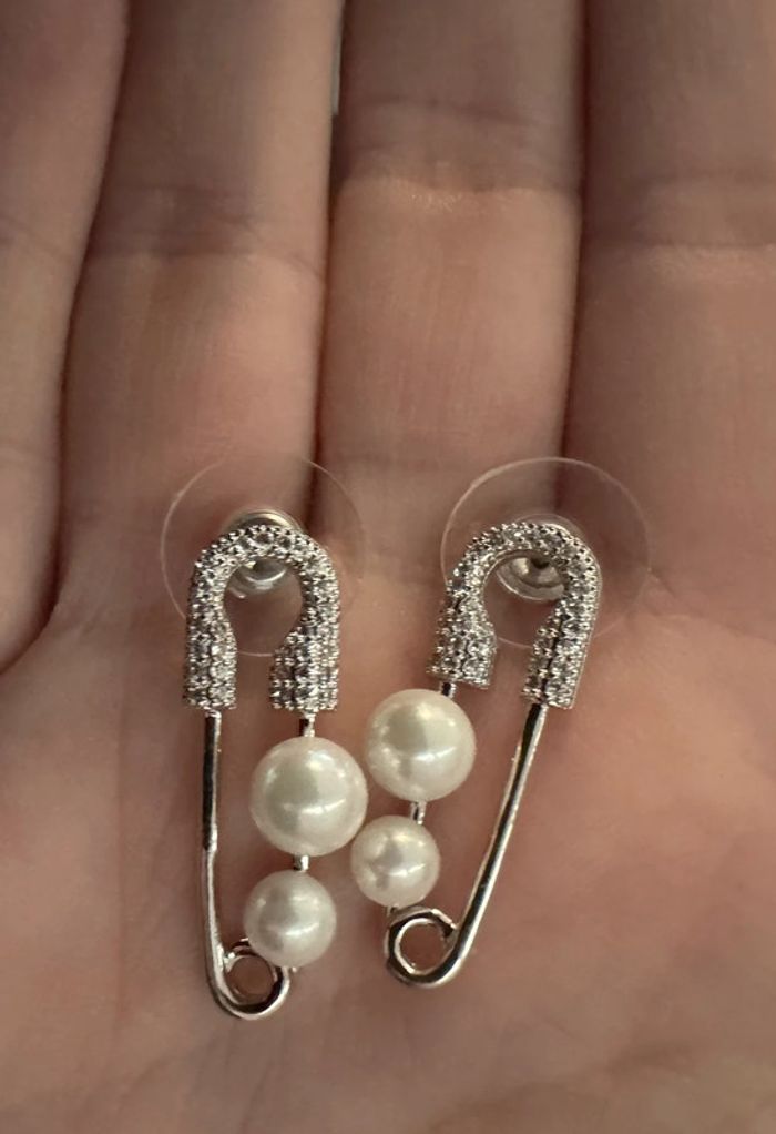 Boucle d’oreille argente epingle et perle - photo numéro 1