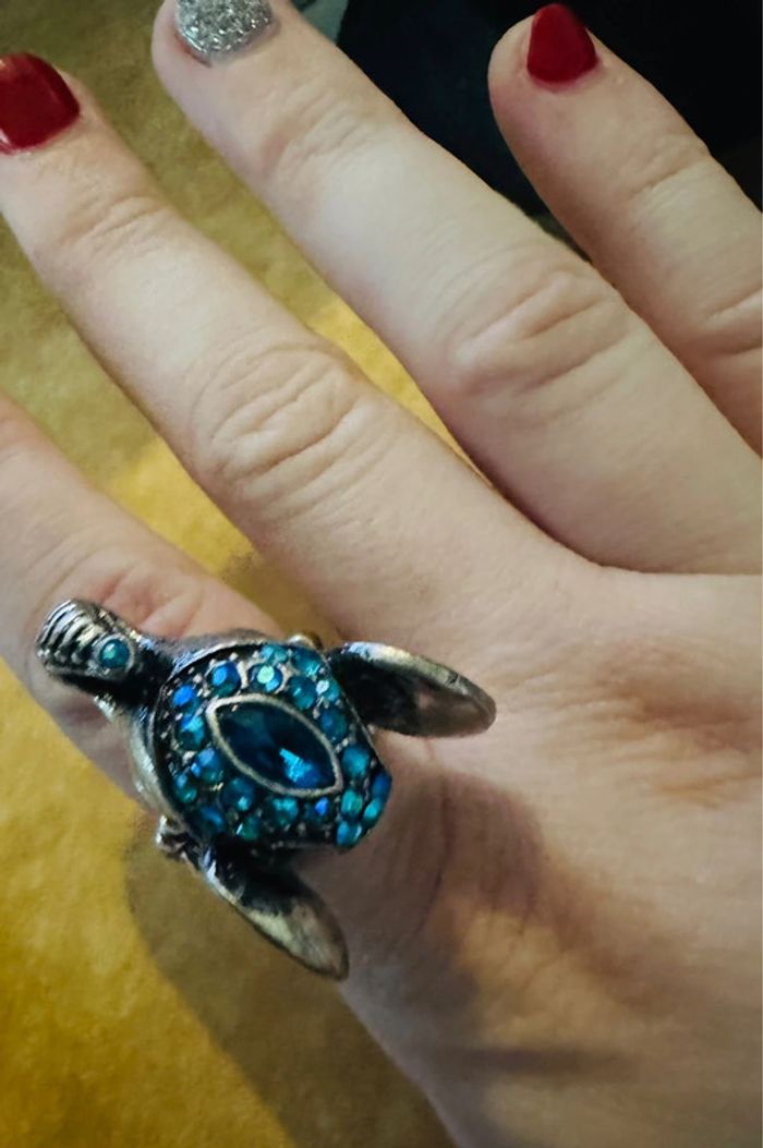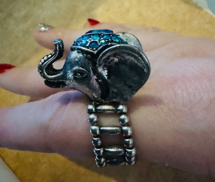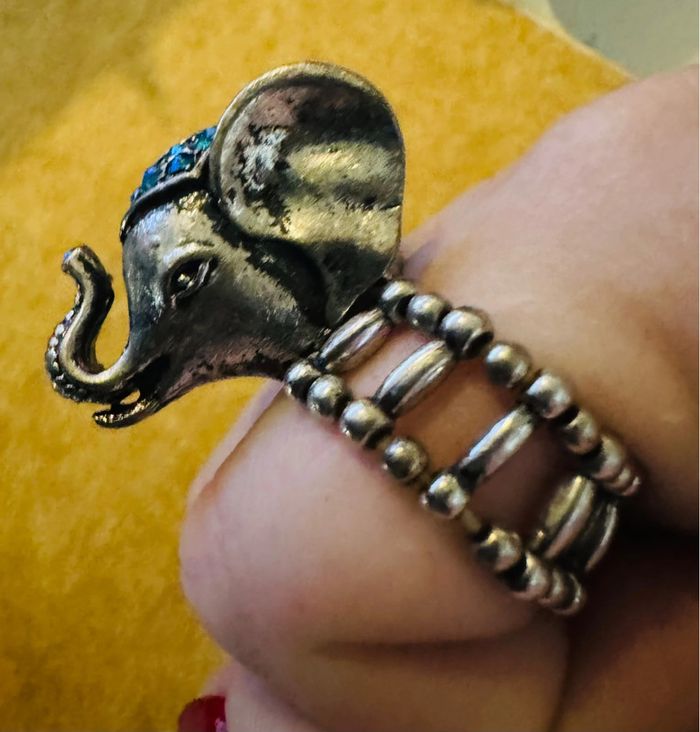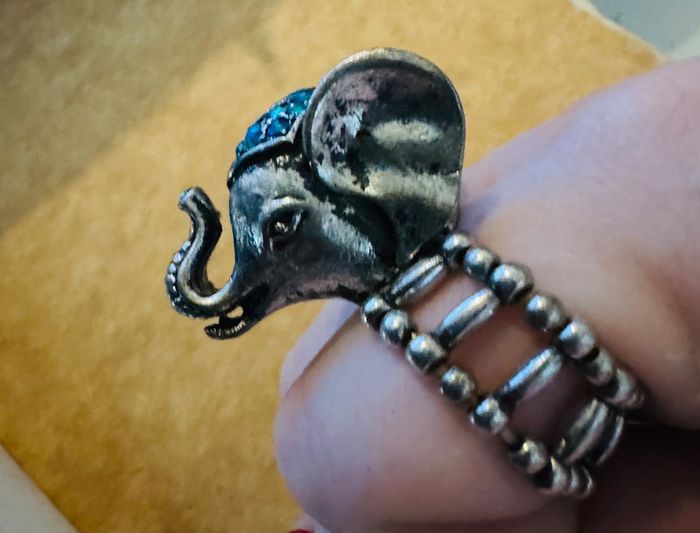 Bague elephant argente et bleue ajustable y2k - photo numéro 1