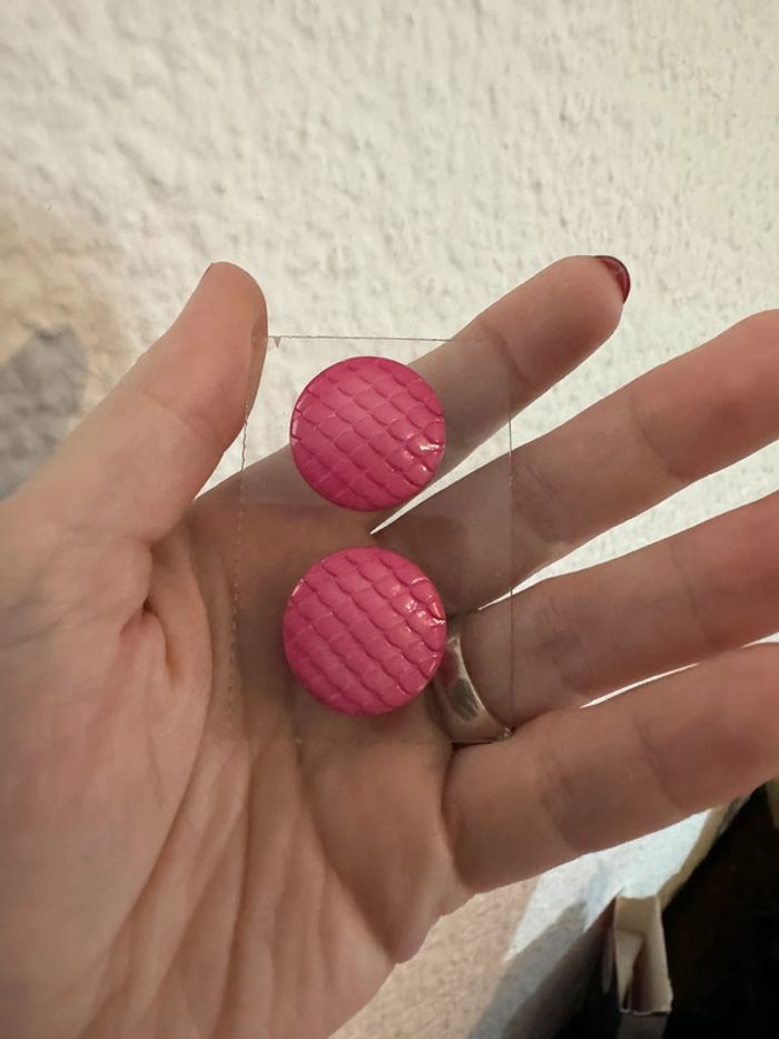 Boucle d’oreille rose martele plastique vintage