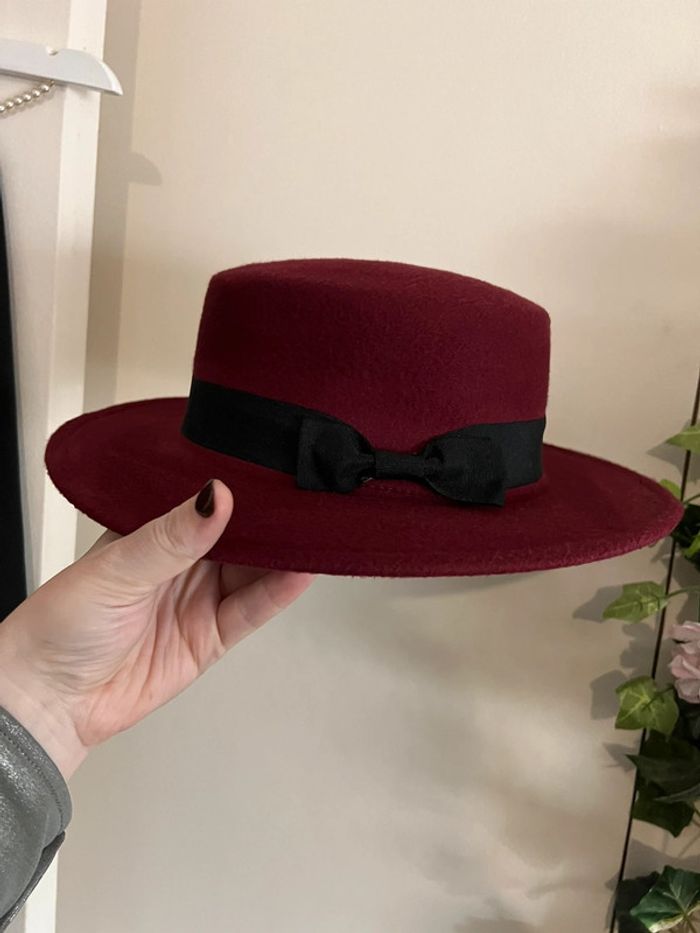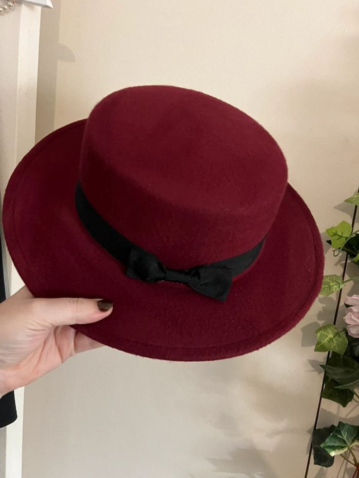 Chapeau bordeaux et noir ruban noeud taille 57 - photo numéro 2