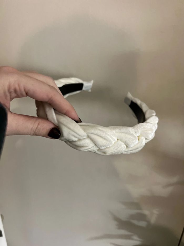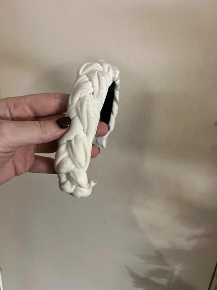 Serre tete tresse blanc creme velours - photo numéro 4