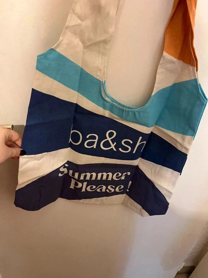 Tote bag toile  bash bleu beige neuf - photo numéro 1