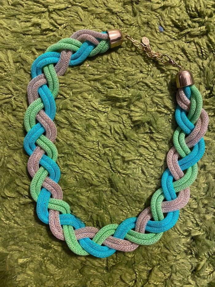 Collier tresse or vert vert fonce