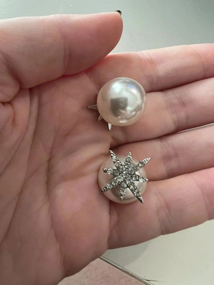 Boucle d’oreille perle et etoile  strass - photo numéro 2