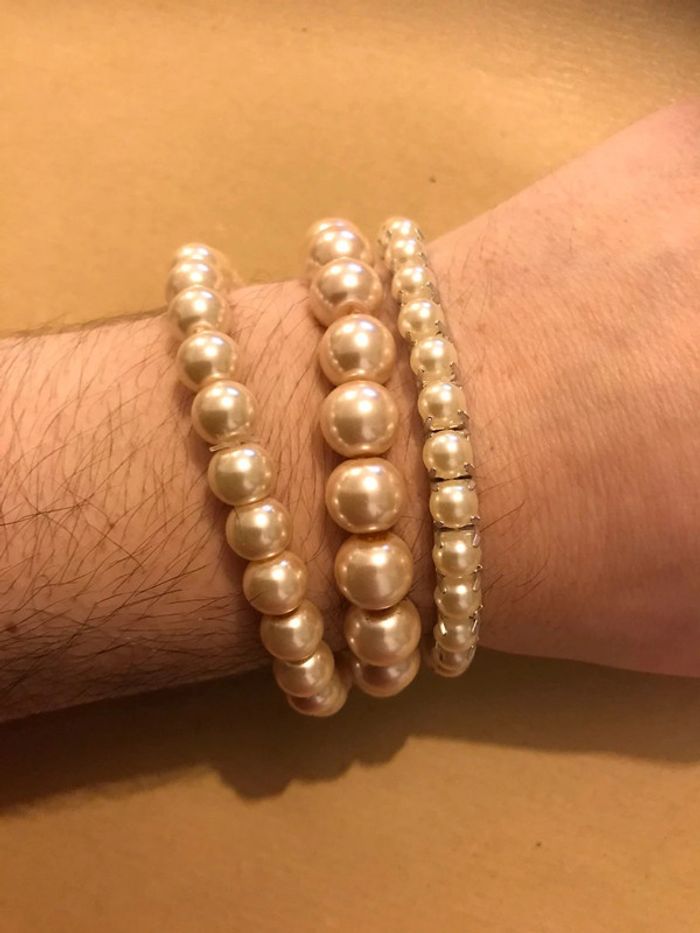 lot de 3 bracelet perle beige irise - photo numéro 1