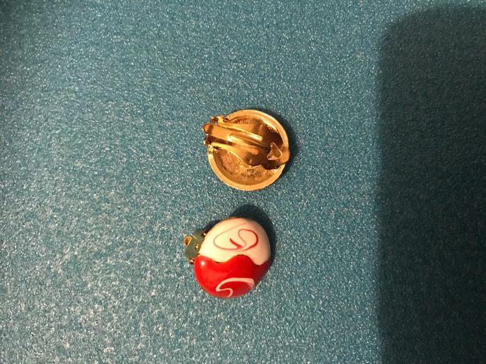 boucle d’oreille a clip vintage dore blanc et rouge metal