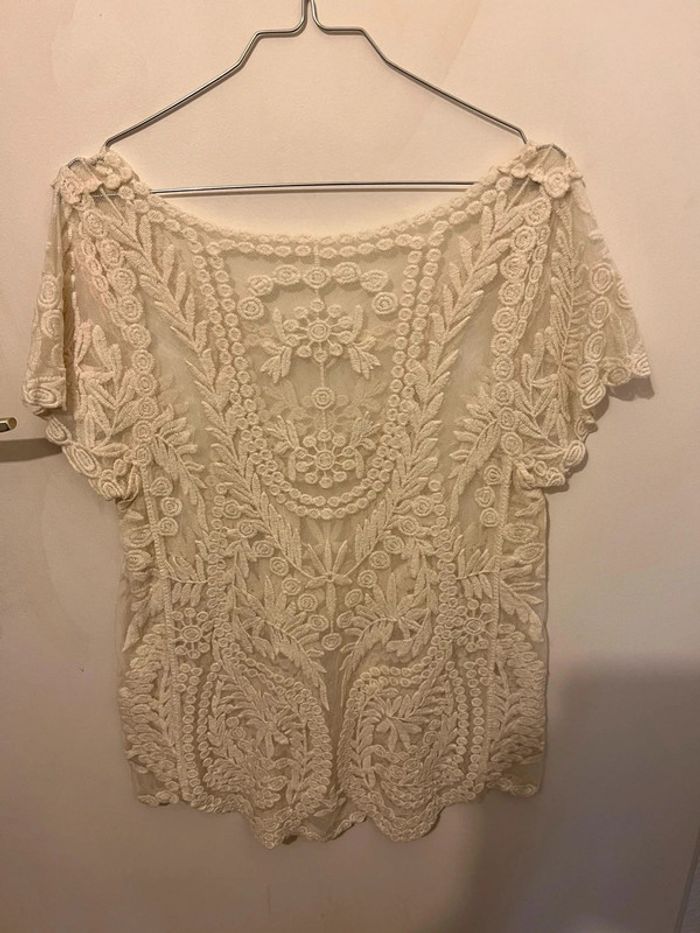 Top creme beige dentelle broderie - photo numéro 1