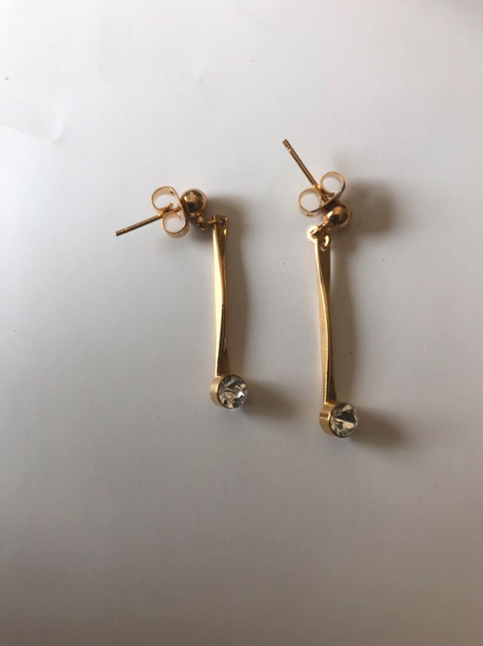 boucle d’oreille longue doree strass - photo numéro 2