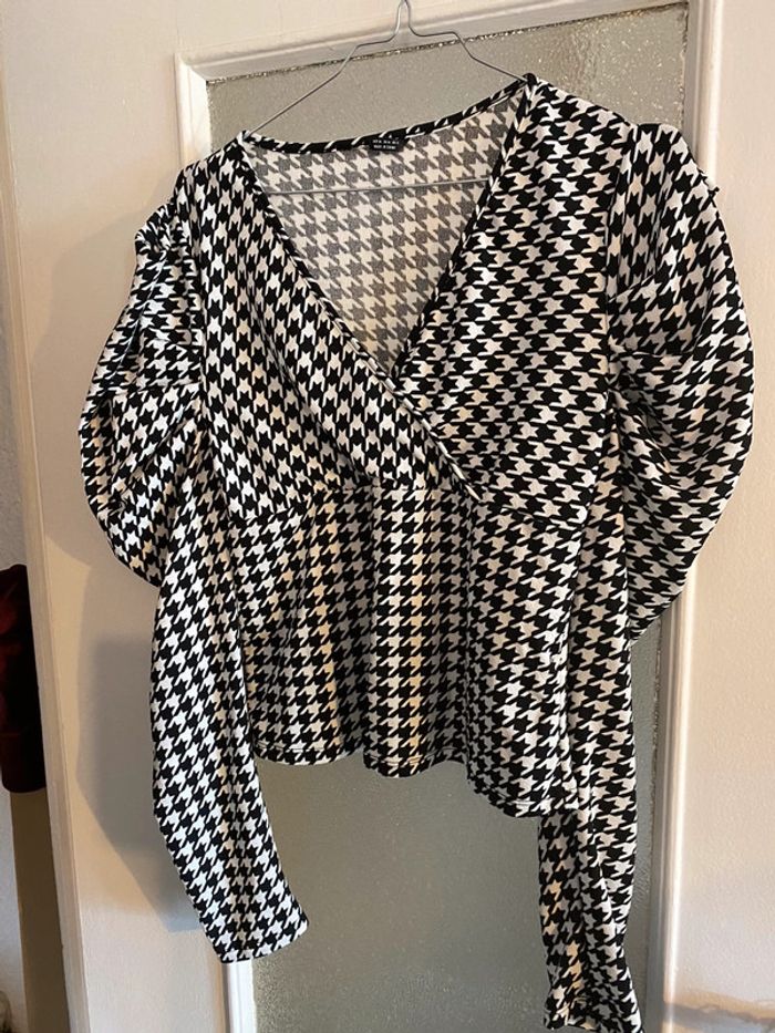Haut cache coeur pied de poule noir et blanc manche gigot 44 - photo numéro 1