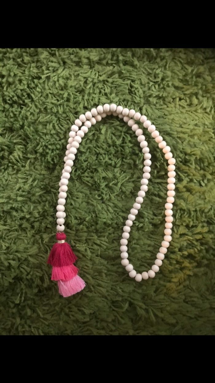 Collier a pompon rose boho - photo numéro 1