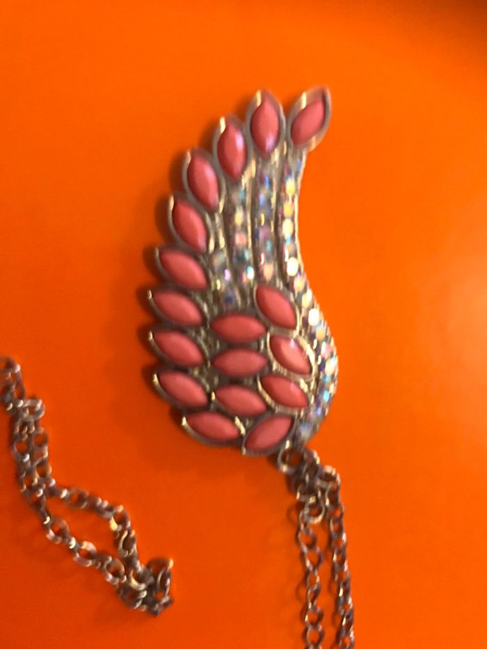 Collier sautoir aile rose et strass - photo numéro 1