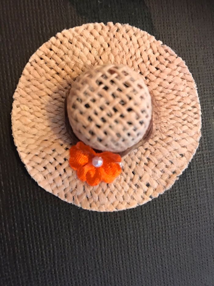 Lot de 2 broches vintage chapeau creme fleur orange perle - photo numéro 2