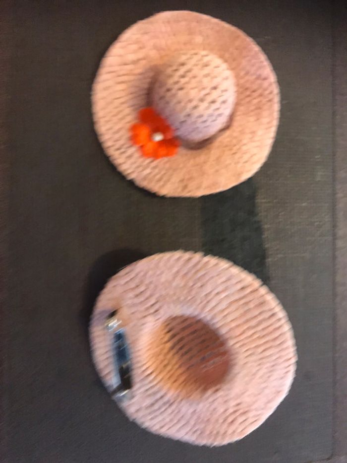 Lot de 2 broches vintage chapeau creme fleur orange perle - photo numéro 1
