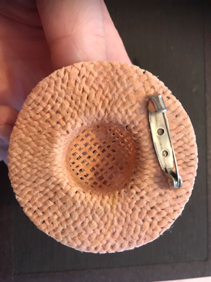 Lot de 2 broches vintage chapeau creme fleur orange perle