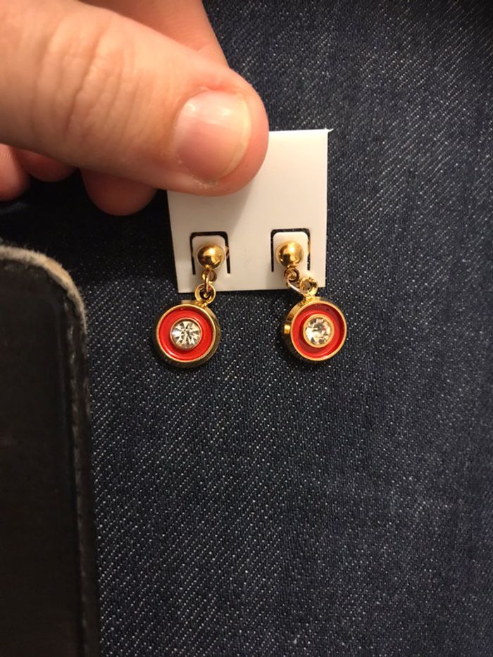 boucle d’oreille dore rouge strass ronde - photo numéro 2
