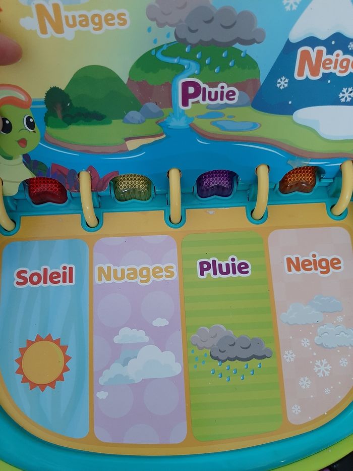Il découvre les chiffres, les animaux et joue de la musique à l'aide des 8 touches de piano.