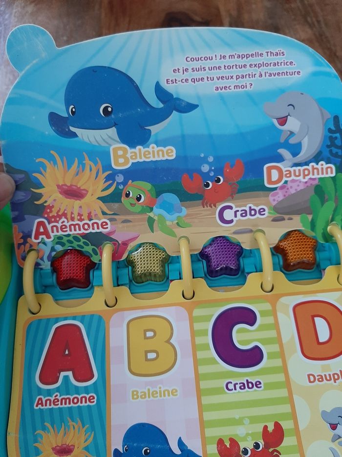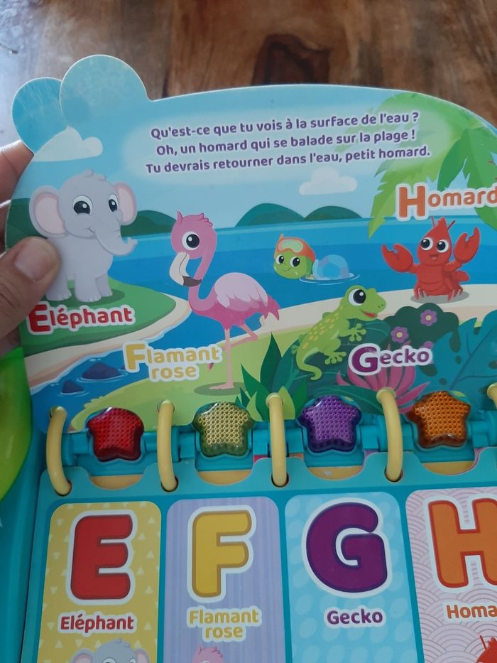 Grâce aux 8 pages d’apprentissage recto verso, votre enfant découvre les chiffres, les lettres, les couleurs, la musique et bien plus encore !