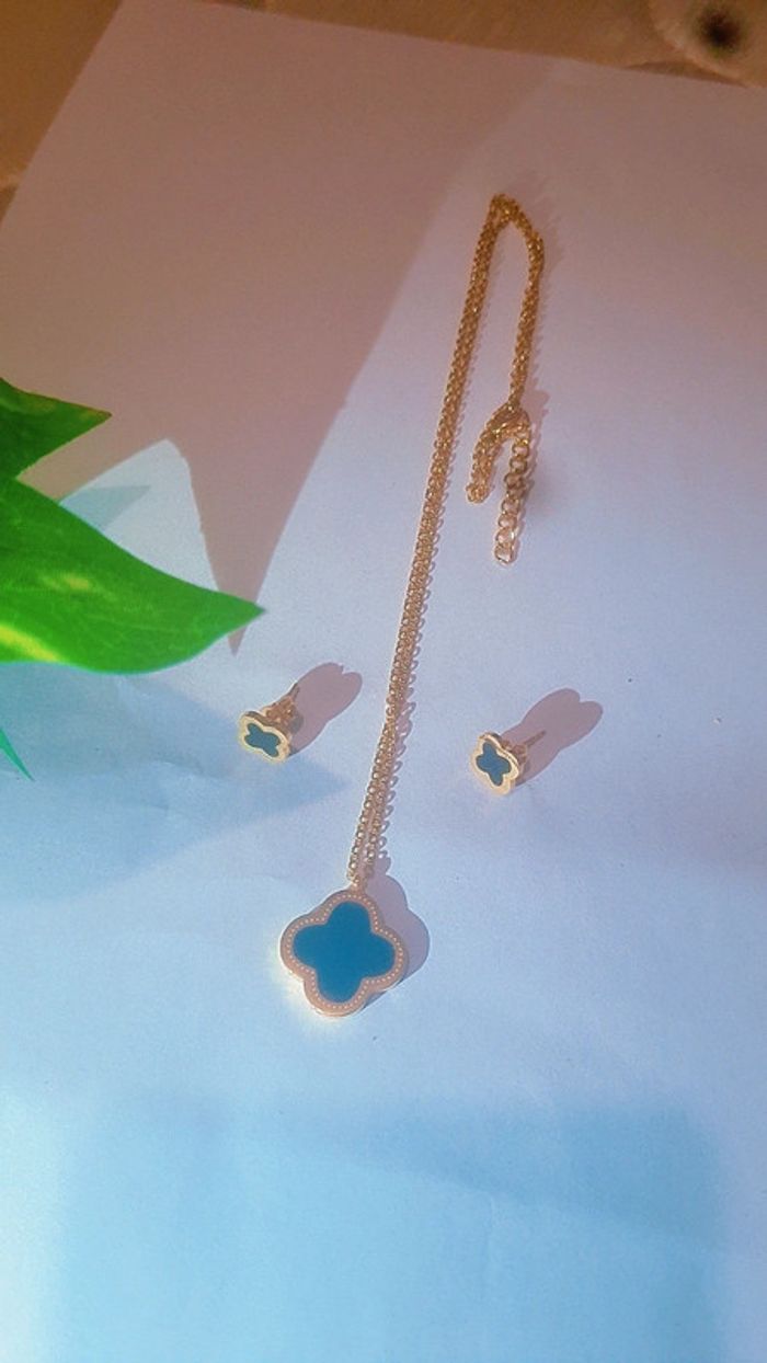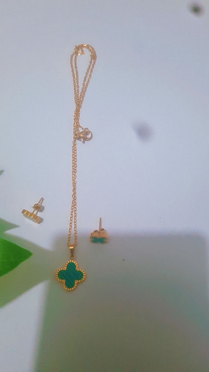 Parure  collier et boucles d'oreilles trèfle - photo numéro 4