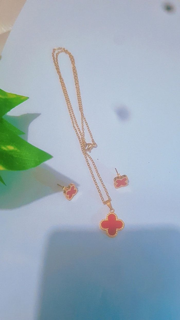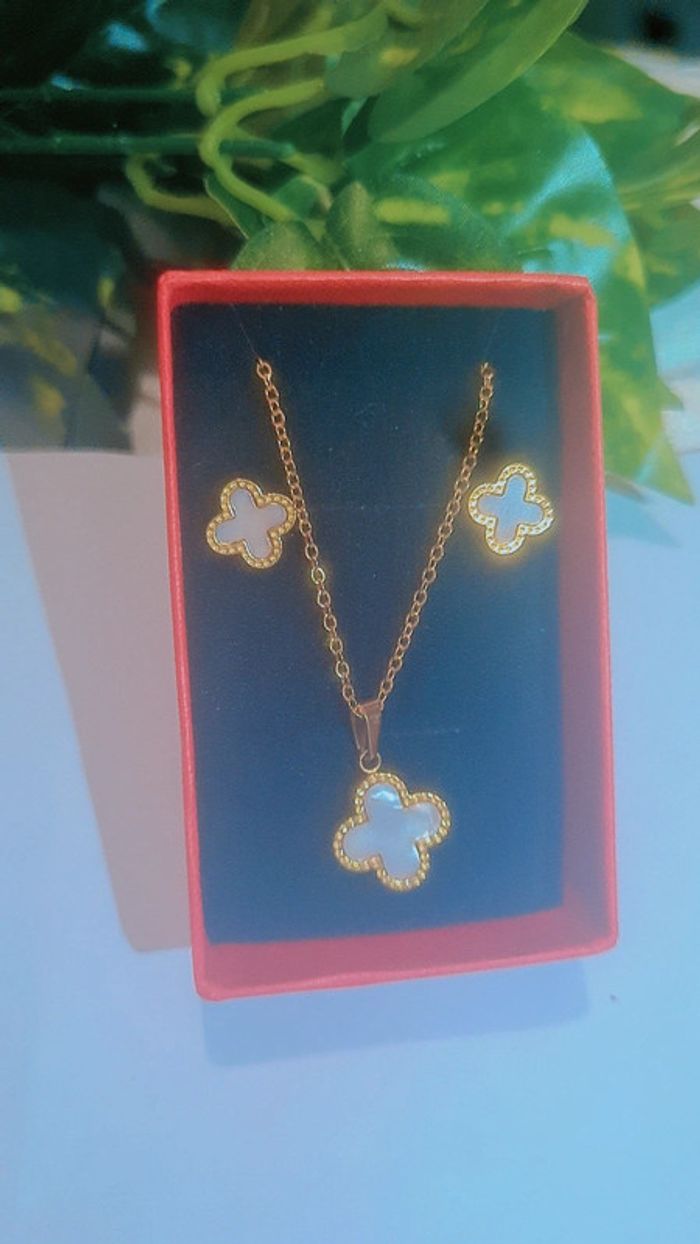 Parure  collier et boucles d'oreilles trèfle - photo numéro 1