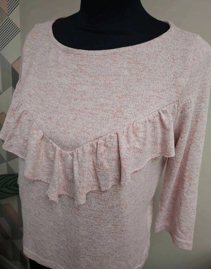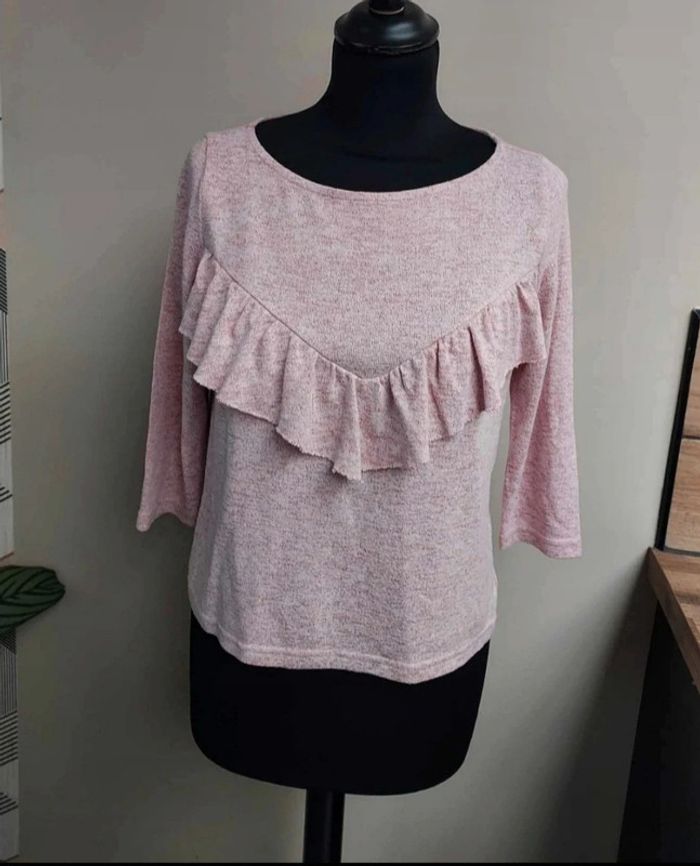 Doux et confortable Colori rose chiné Avec volants sur le devant Manches 3/4 Étiquette de composition coupée Réductions possibles sur lot sur demande #pullonly #pullonlyxs #only