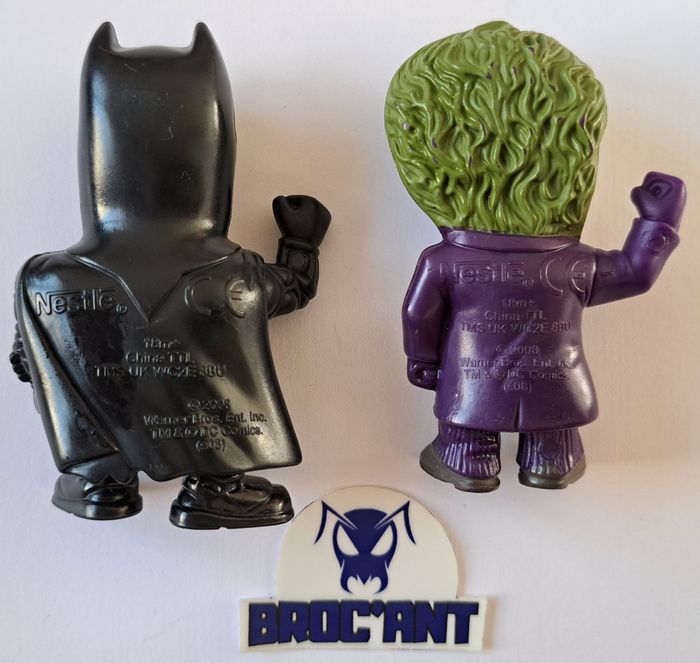 Figurines DC Comics Batman The Dark Knight + The Joker / Warner Bros et Nestlé 2008 / 6cm État : usagée, traces de marqueurs sur le Joker. Voir photos et description pour les détails. Envoi suivi, rapide et soigné (vente directe possible à Berck). Plusieurs articles vous intéressent ? Créez un lot pour rentabiliser les frais d'envoi. Besoin d'autre(s) renseignement(s) ? Contactez moi. Broc'Ant / Jouets – Jeux Vidéo – Brocante – Collection #brocant #brocantdccomics #brocante #vintage #retro #ancien #collection #jouet #toy #figurine #figure #dccomics #nestle #batman #joker