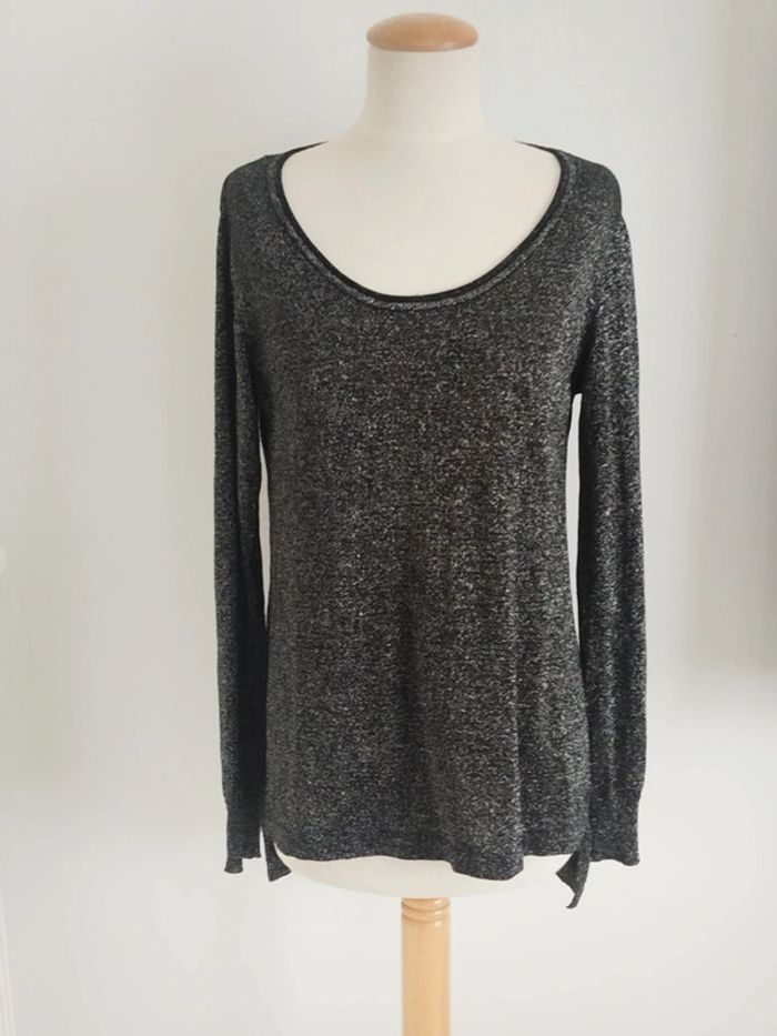 Blouse asymétrique manches longues noir pailleté argenté taille 42/44 - photo numéro 2