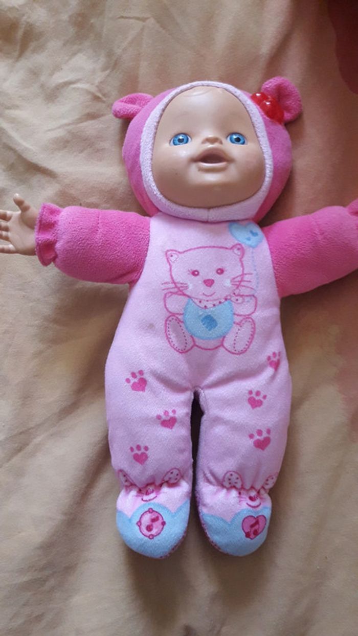Poupée/ bébé, elle fonctionnait sûrement les piles a changé. 2 petites taches voir photo mais reste impeccable