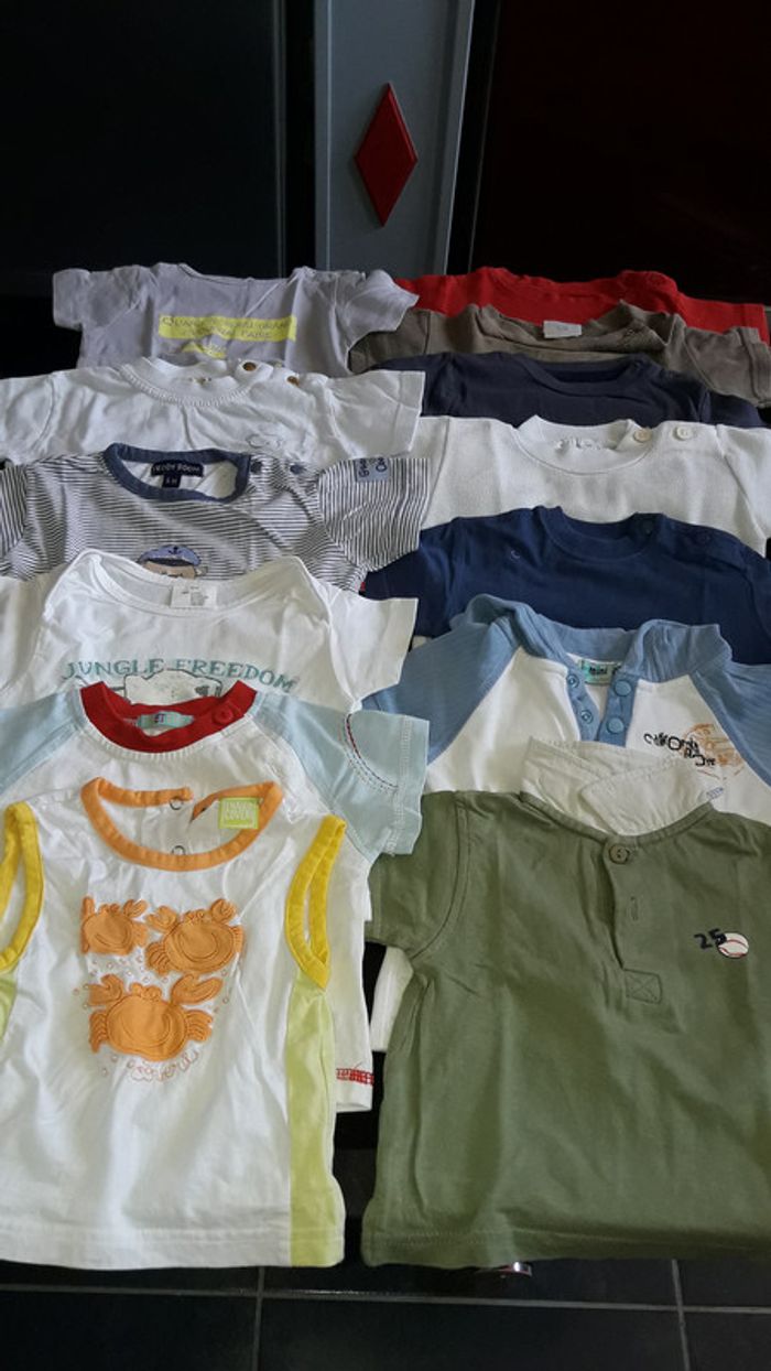 Lot de 13 tee shirts MC en 6 mois Pas de taches, pas de trous Kitchoun In extenso Teddy boom Tom et kiddy Enrico coveri Bout'chou Mini gang Triple jump