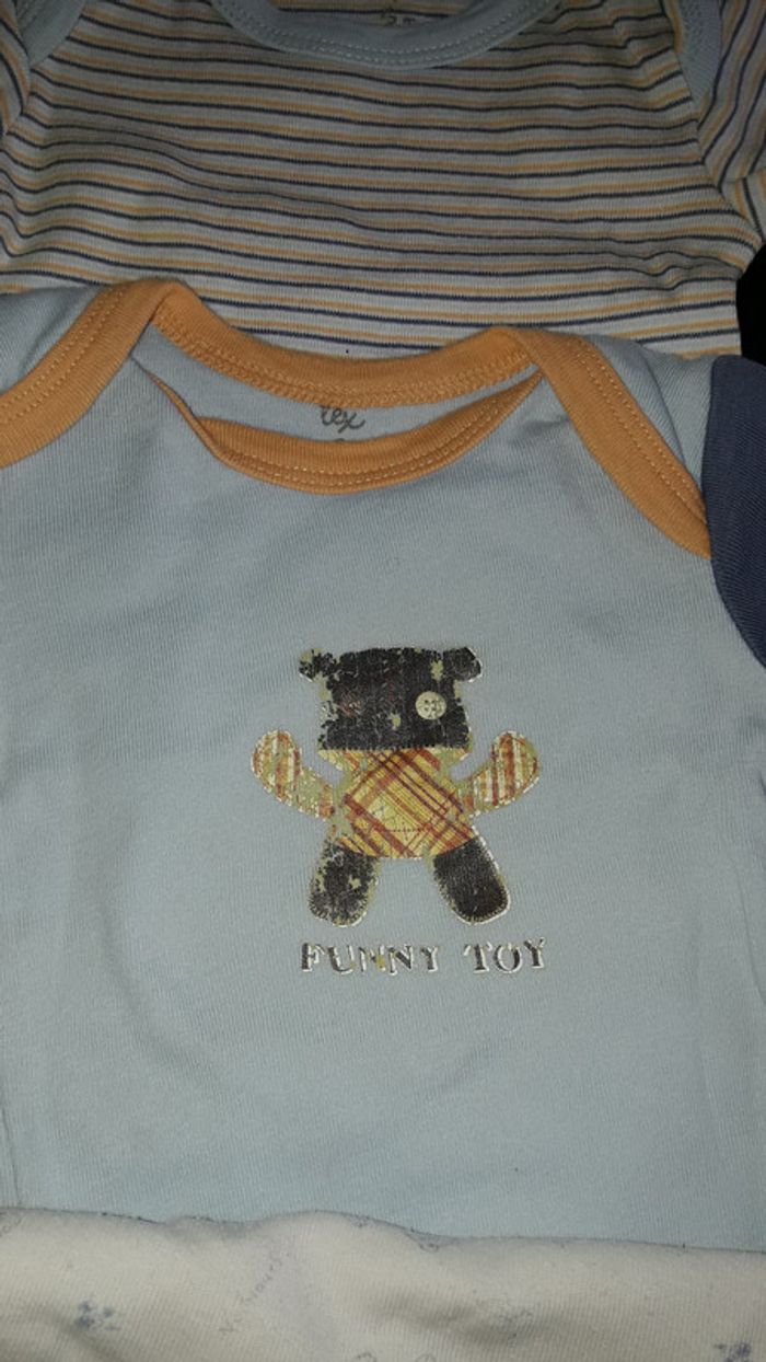 Lot de 5 bodies en 6 mois, le dessin est un peu effacé sur un