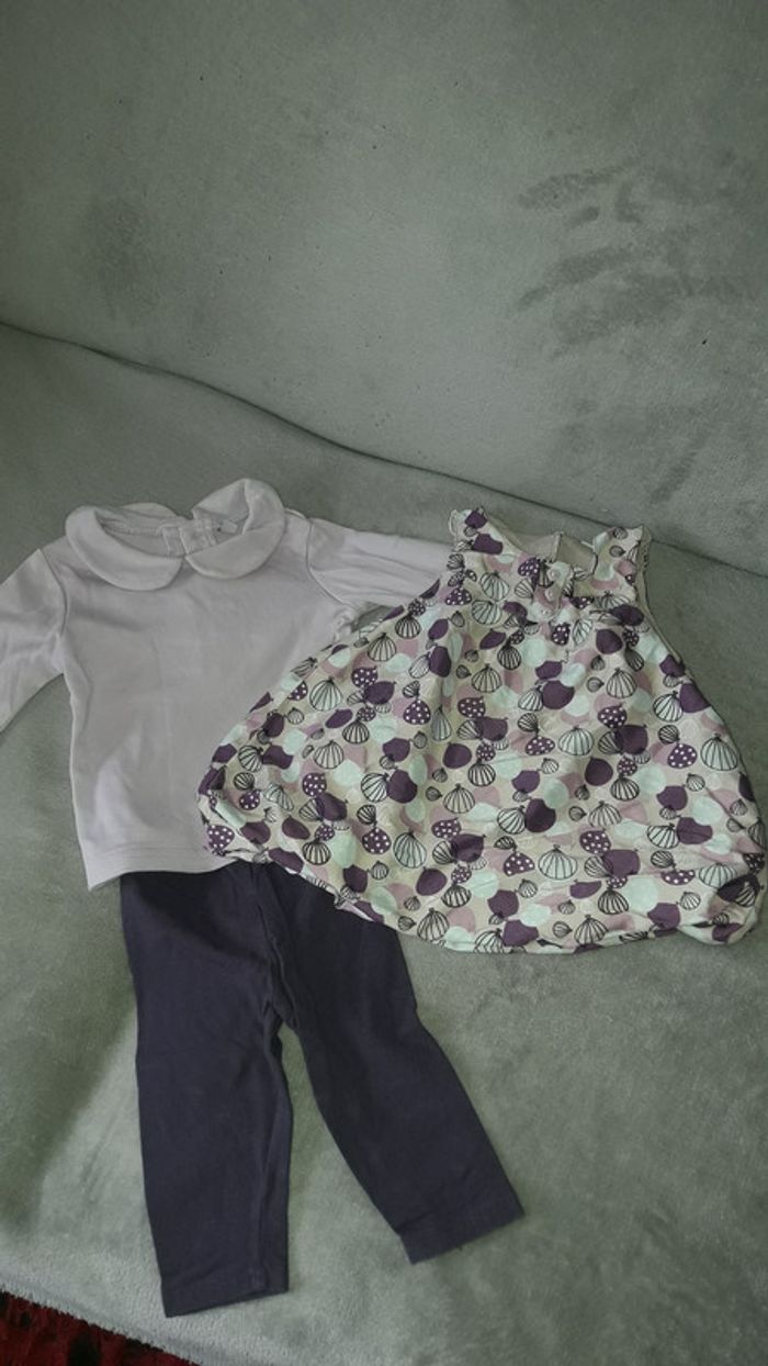 Ensemble en 6 mois, comprenant un leggings long, 1 tee shirt manche longues et 1 robe, pas de tâches, pas de trous