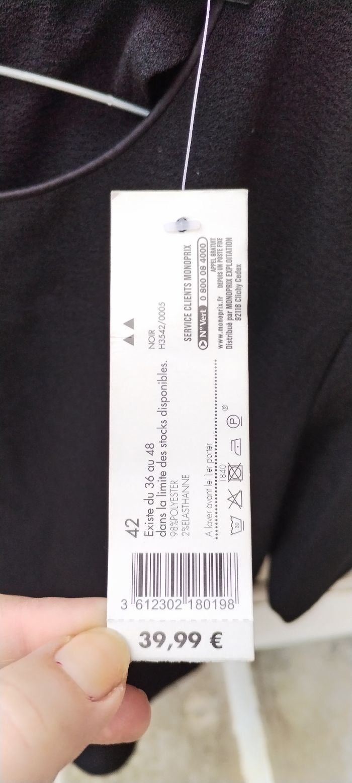 Robe noir à manches courtes pour femme. Marque Monoprix. Taille 42. Neuve avec étiquette. Que mondial relais ou Relais Colis.