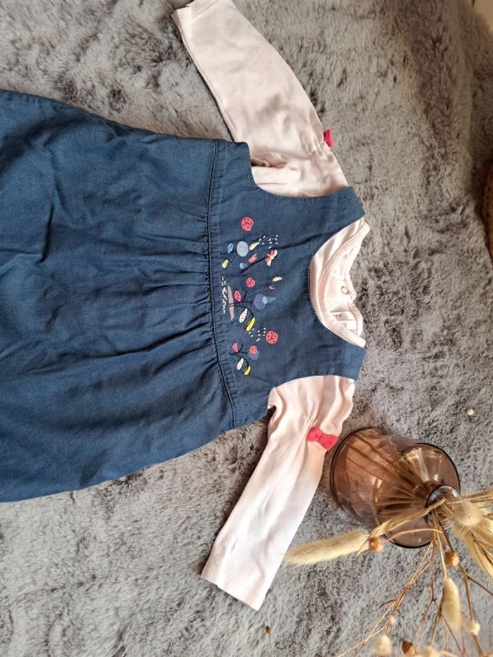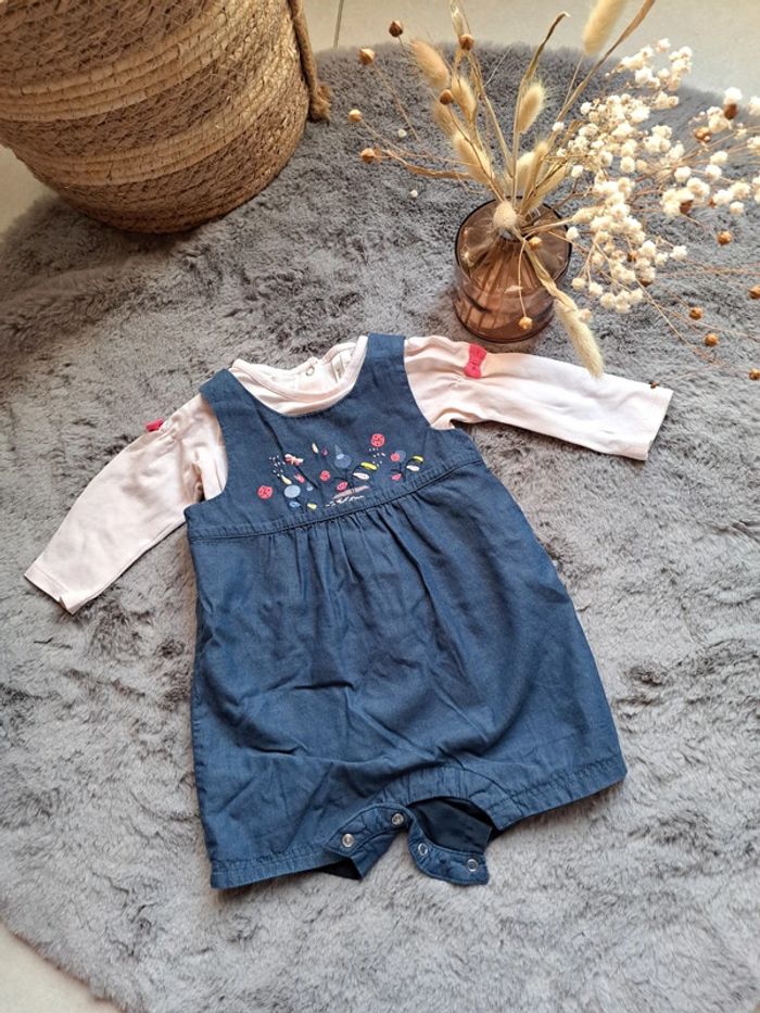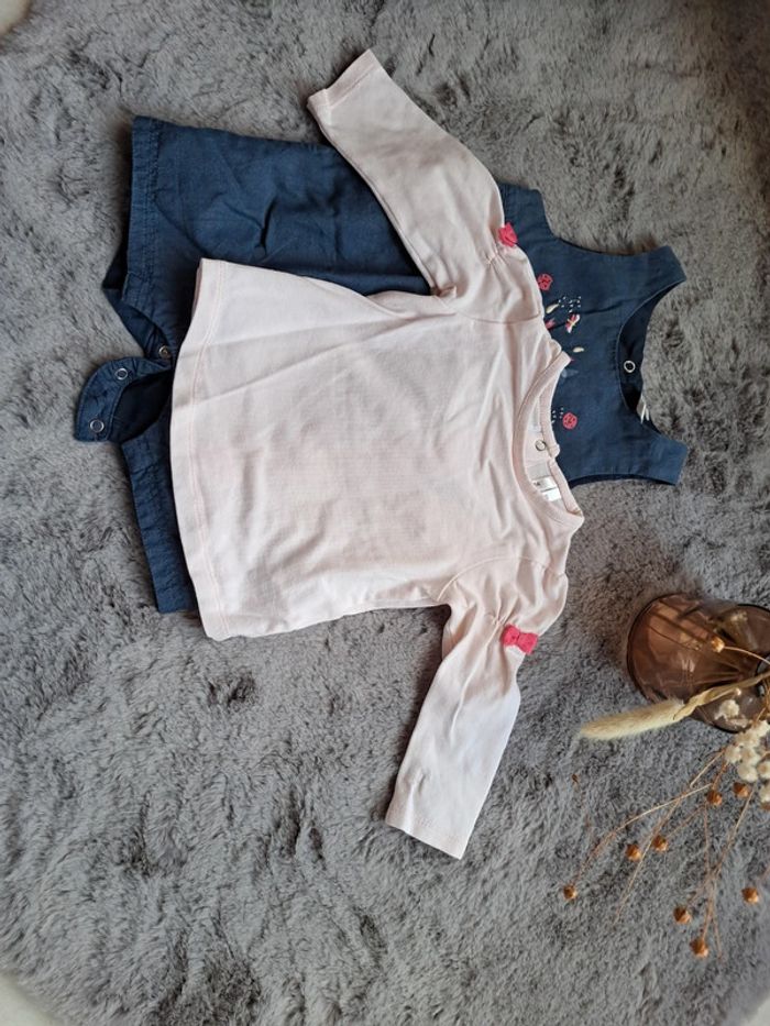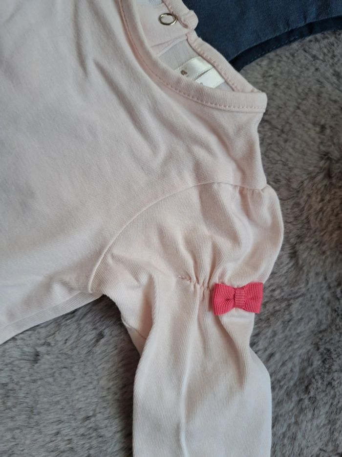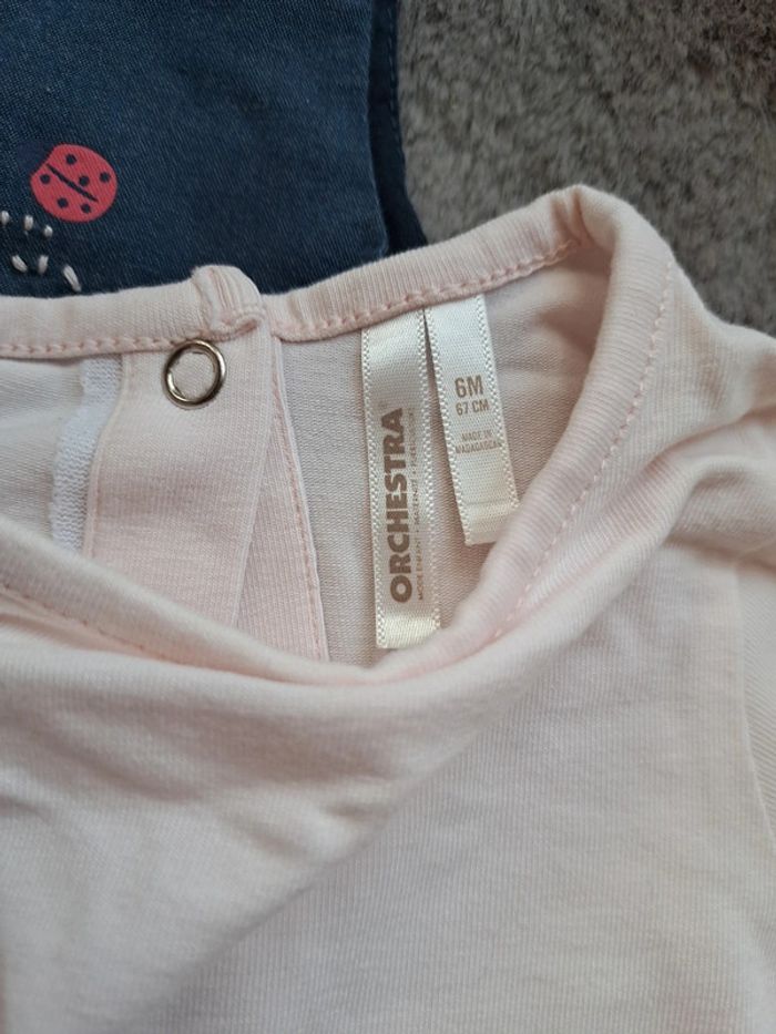 #ensemble #bebe #fille #combishort #marine #motif #bretelleslarges #pression a l'entrejambe Avec #teeshirt #mancheslongues #rose #rosepale details #noeuds sur les epaules #excellentetat #taille6mois #orchestra