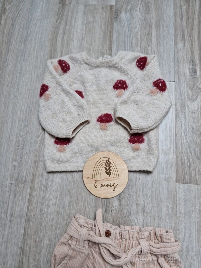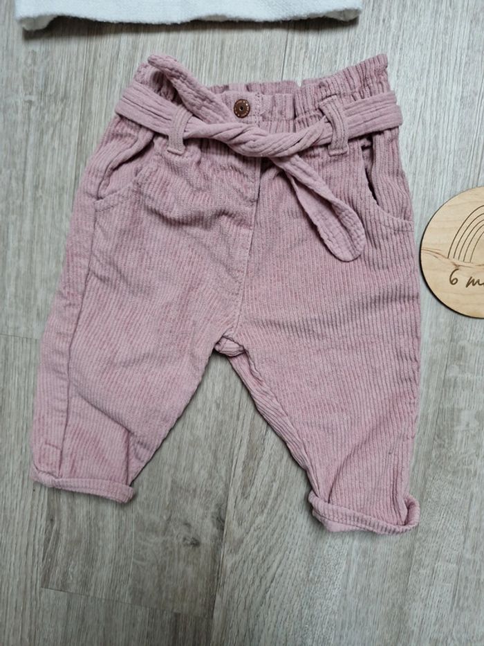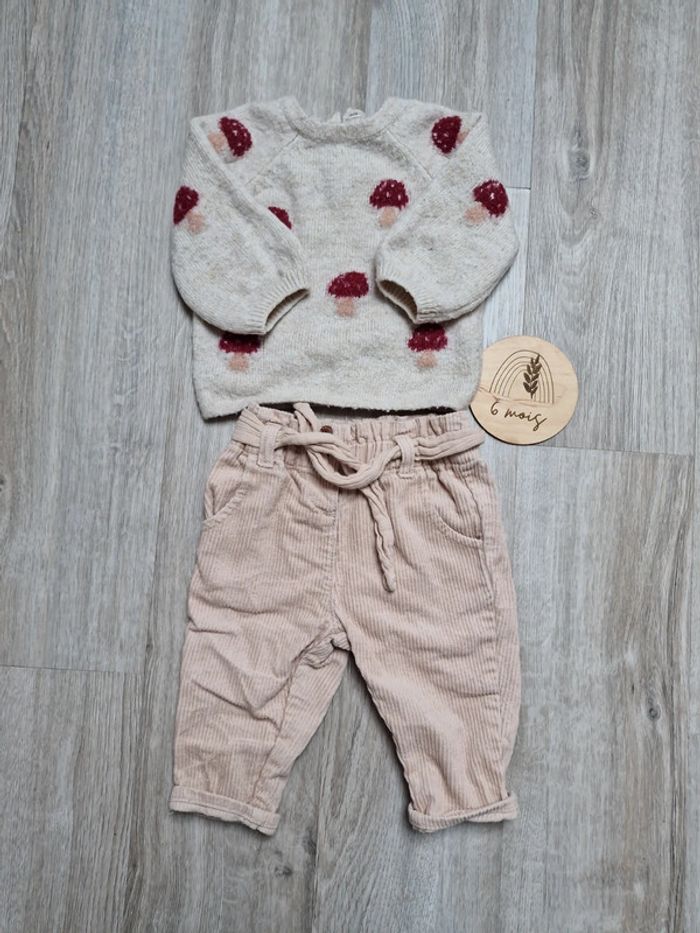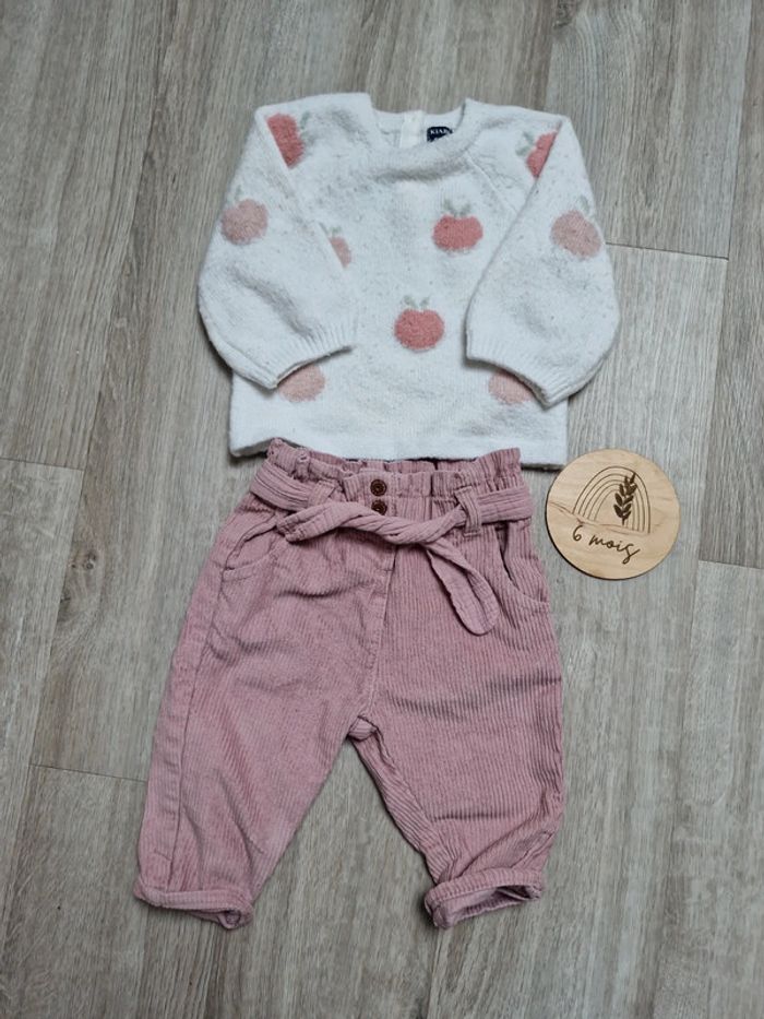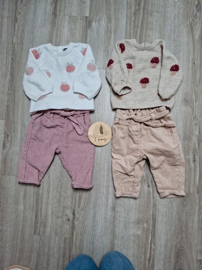 2 pull kiabi très bon état mais porté et lavé plusieurs fois 2 pantalons en velours Le tout marqué kiabi 6 mois