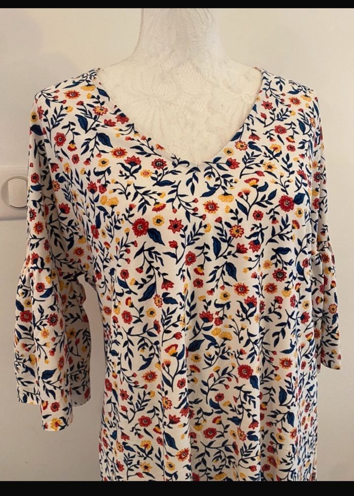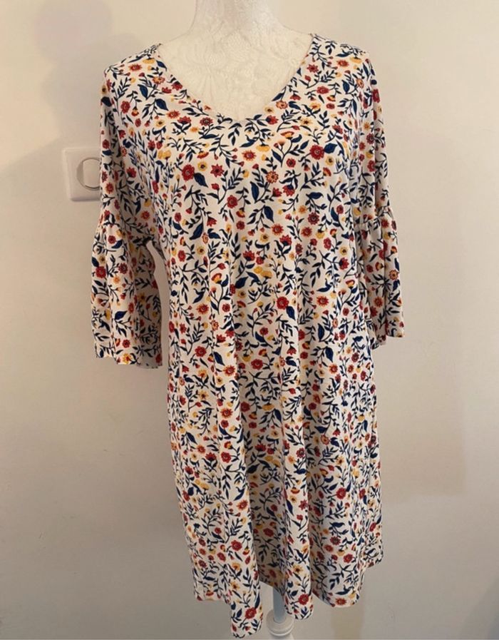 Robe tunique de la marque Mango, style bohème-chic et coupe fluide. 📐Taille: M / 38 🏷️ Marque mango 🌸 Motif : imprimé floral d'inspiration printanière 👗manches trois-quarts 🧼 État : très bon état