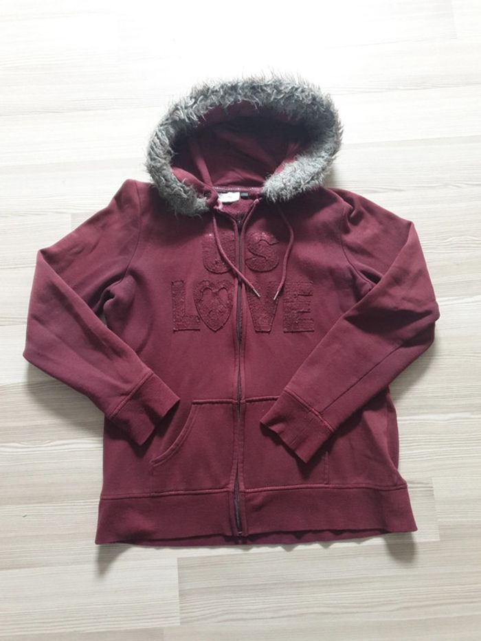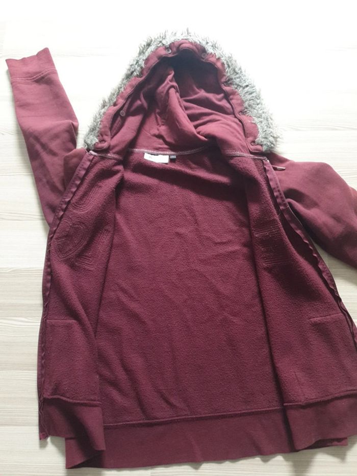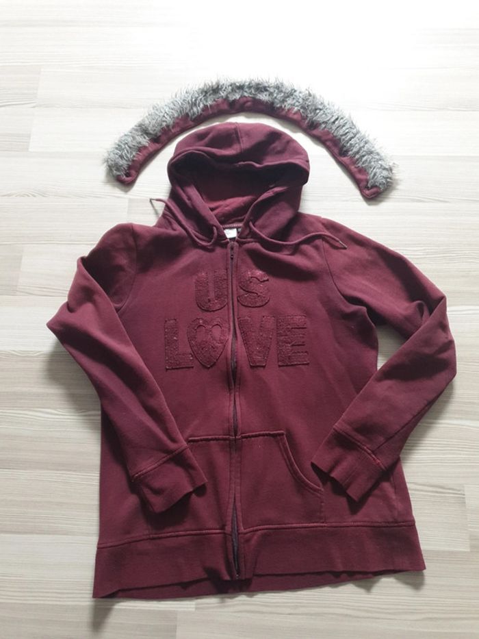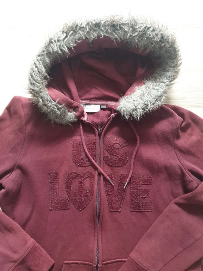 Vend une veste à capuche pour femme Capuche amovible, fermeture éclair, poches Taille S/M ( étiquette XL mais taille petit) Marque kiabi