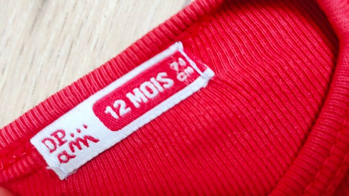 Pyjama DPAM 74CM, assez fin pour mi-saison. Rouge avec rayures blanches sur les manches. Thème pirates.